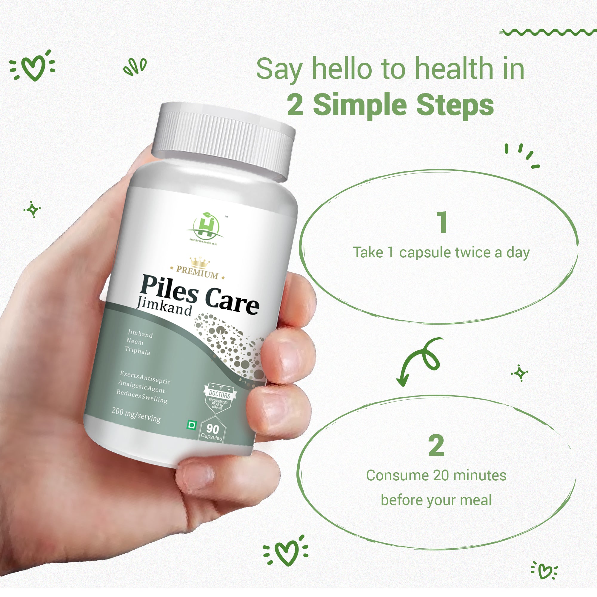 Helps to provide relief in constipation and treatment recurrence of piles. Improves Digestion,Help in Reduces Swelling Ingredients- Triphala, Jeemikand, Trikatu which are widely used in digestive health Neem helps to provide relief from burning sensation and also works as an antimicrobial agent.